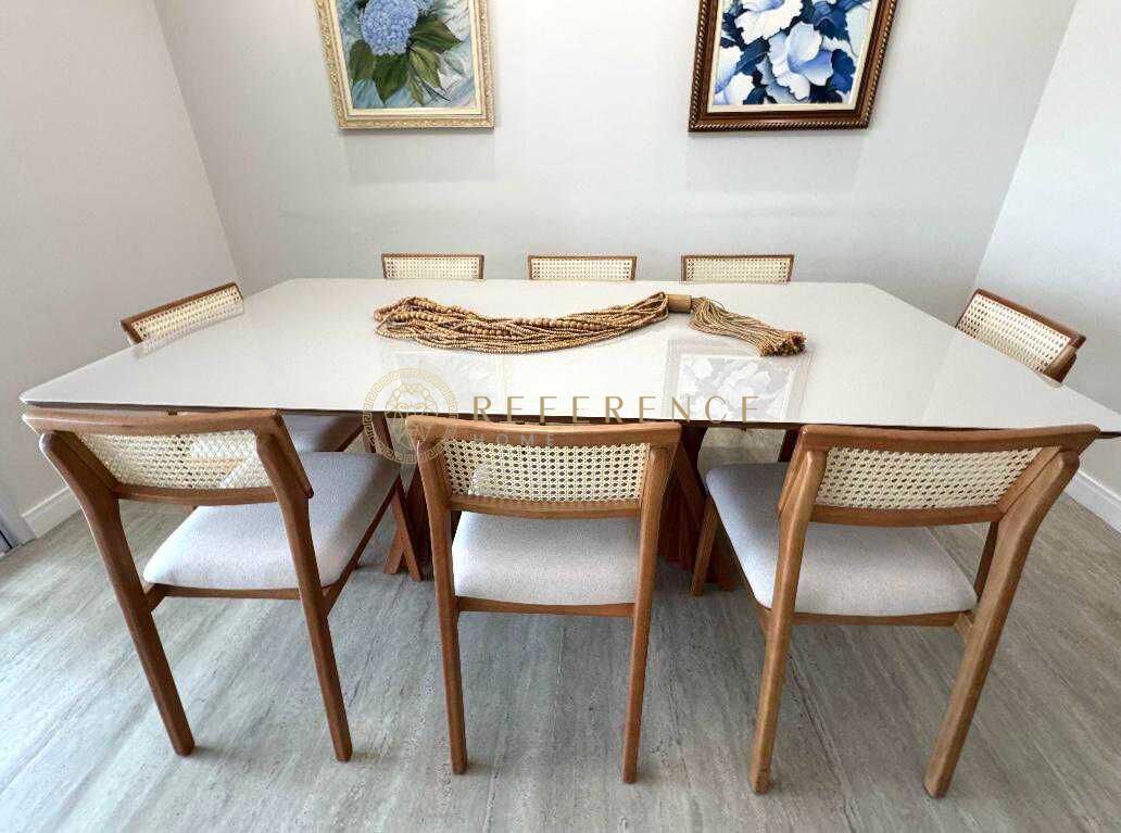Elegante e funcional, conecta-se naturalmente à cozinha e à varanda gourmet, favorecendo encontros e experiências gastronômicas em um espaço equilibrado e fluido.