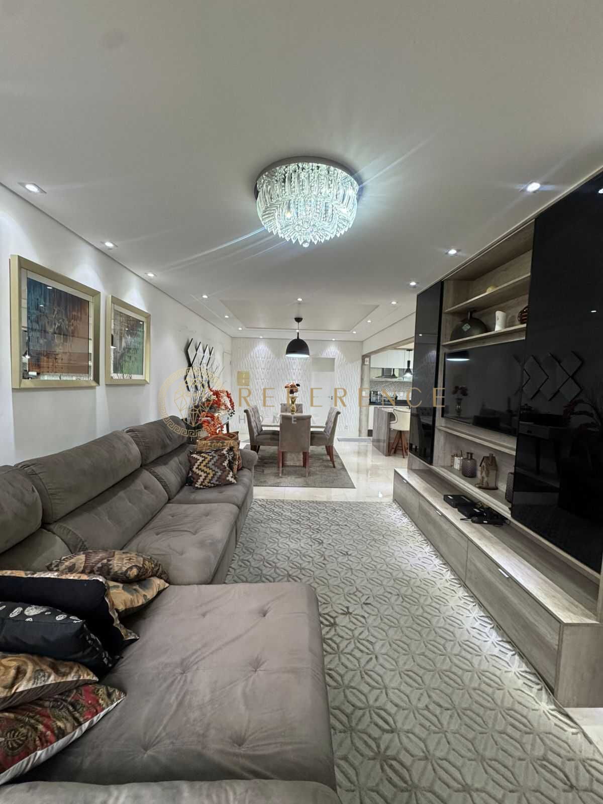 Ambiente amplo, com integração fluida entre as áreas de convivência e varanda. O projeto de iluminação e o piso uniforme ampliam a percepção de espaço e valorizam o design interior.