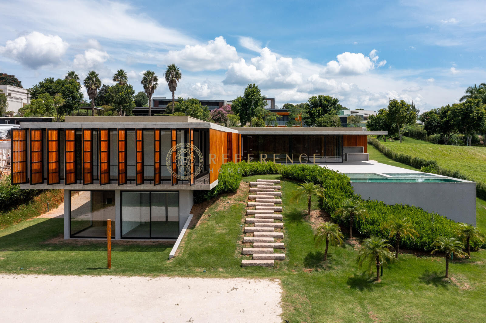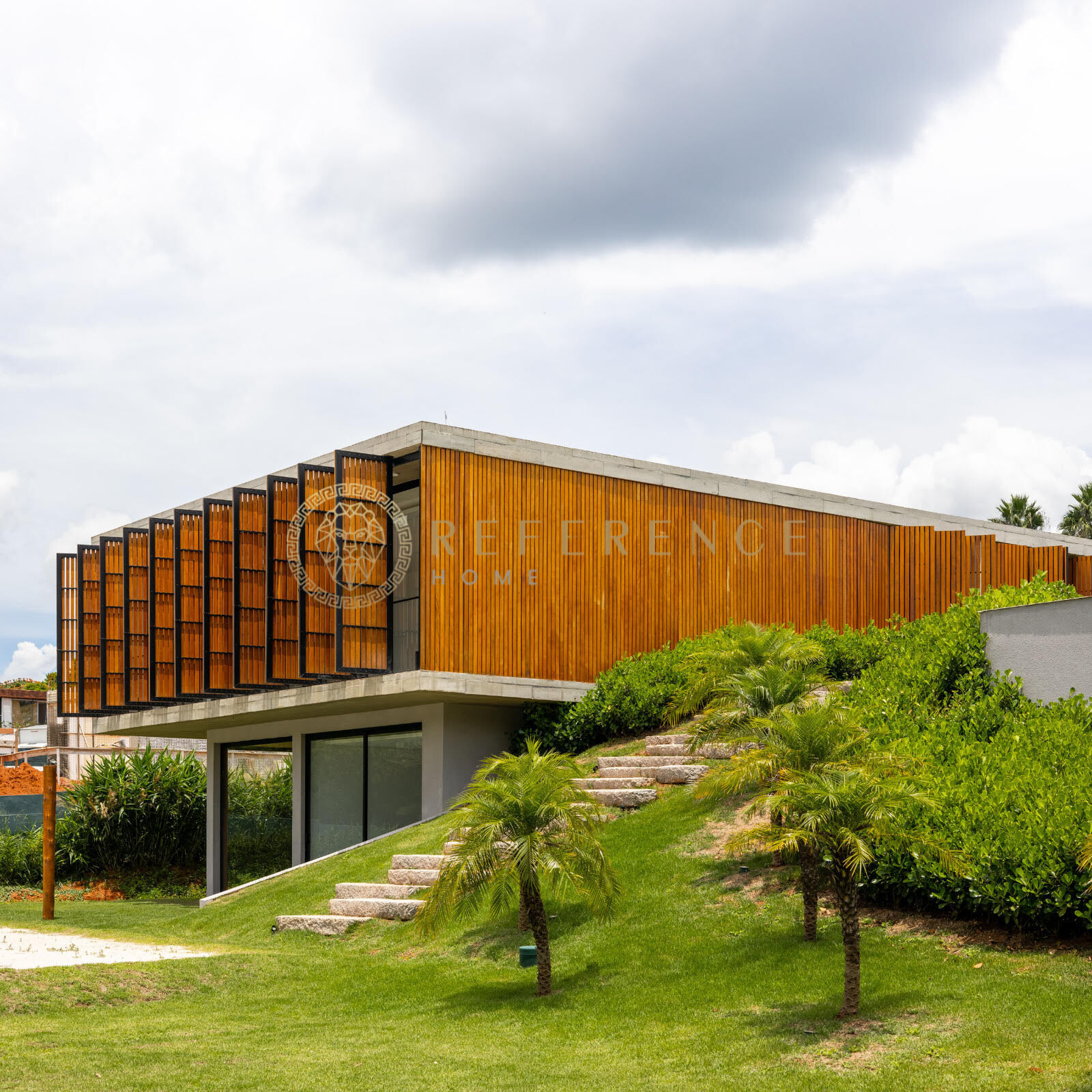 Paisagismo cuidadosamente planejado, ampliando a sensação de amplitude e valorizando a imponência da residência.