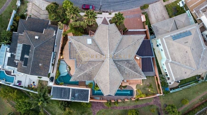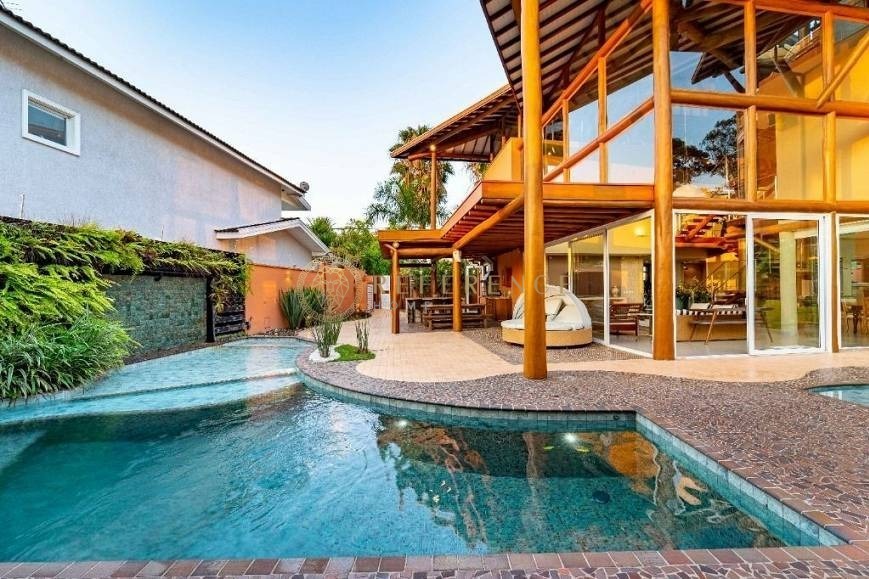 1.000 m² de terreno | 3 suítes (1 master) + suíte de hóspedes | 2 piscinas | SPA com sauna e jacuzzi | Academia | Espaço gourmet | 6 vagas de garagem