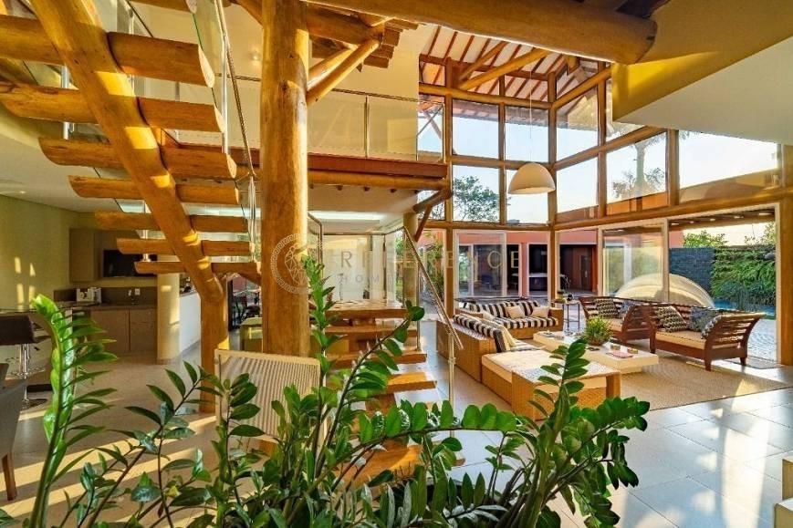 Inspirada nas casas de praia de Bali e Trancoso, esta residência contemporânea une amplitude, luminosidade e integração com a natureza.