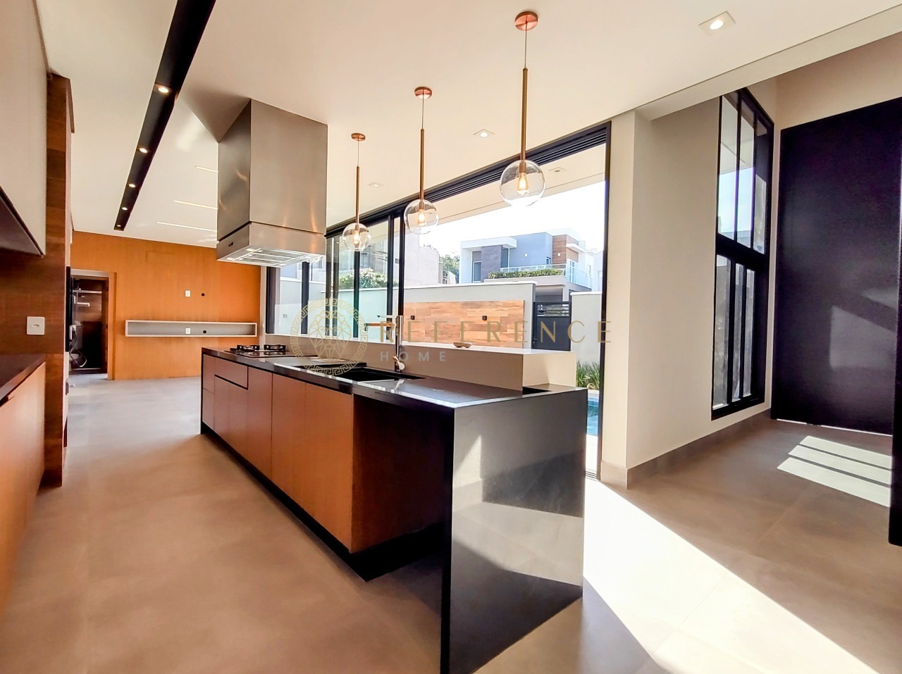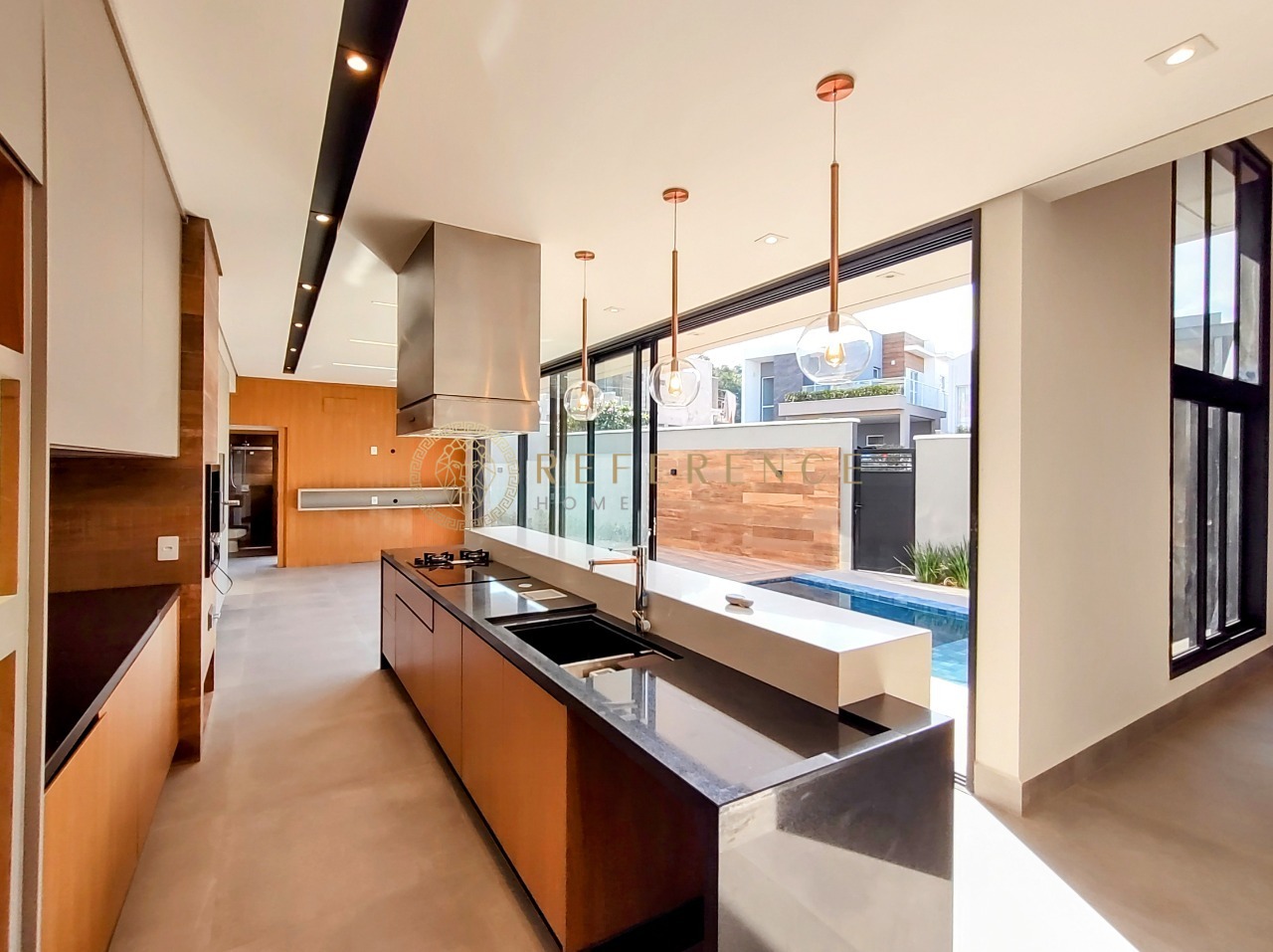 Integração perfeita com a área externa, churrasqueira, deck molhado e preparação para refeições ao ar livre.