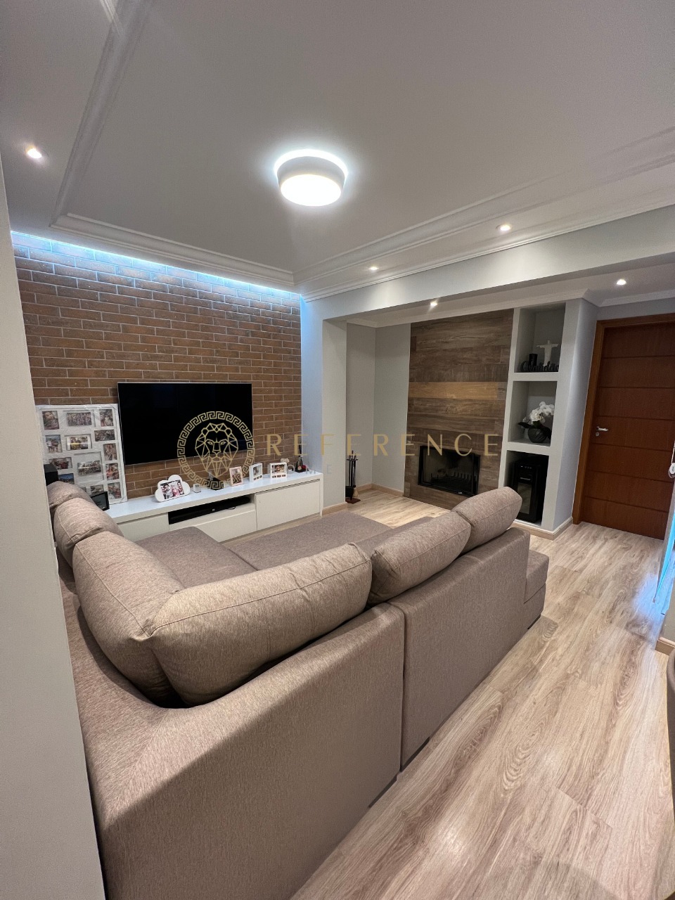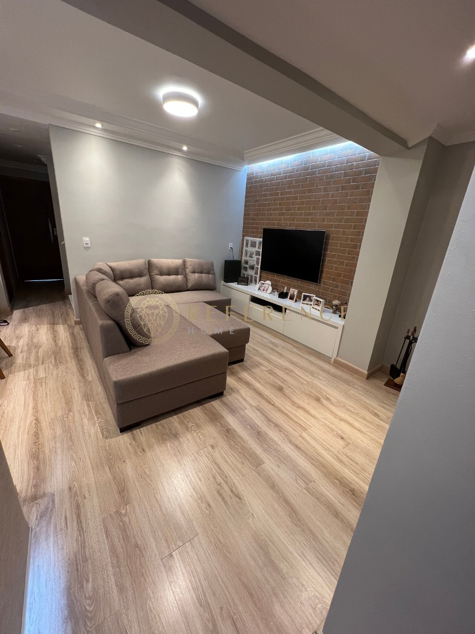 A sala de estar climatizada cria um ambiente de acolhimento e requinte, perfeito para momentos de convivência ou descanso em família.