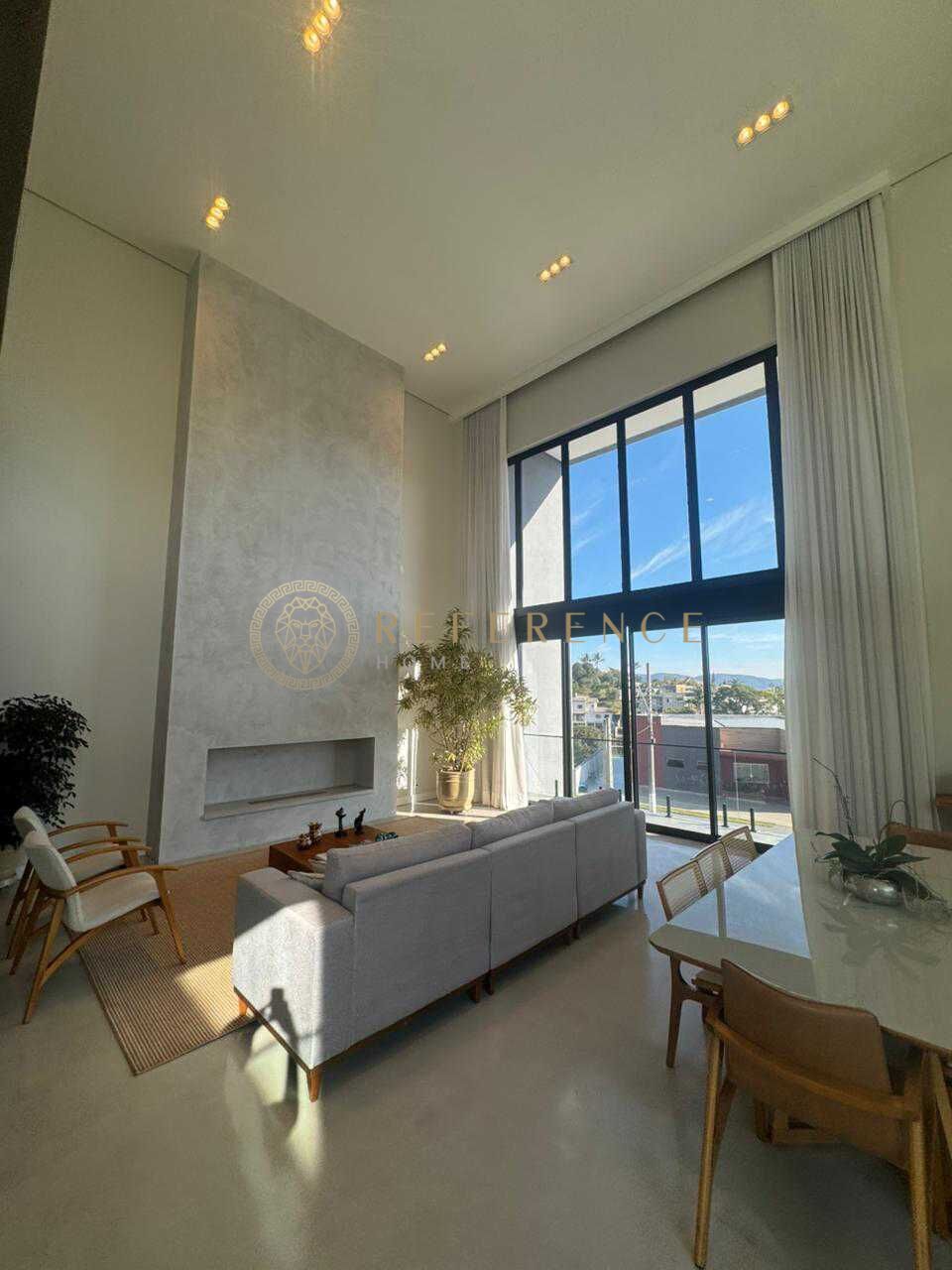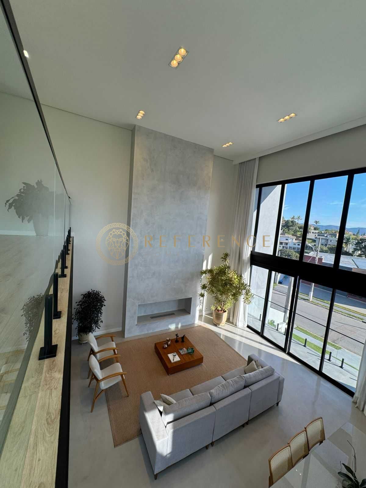 • Sala principal com pé-direito duplo e lareira
